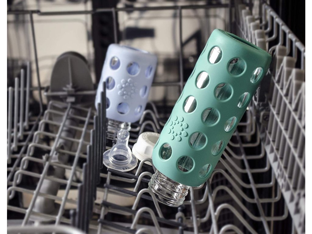 Fľašu možno umývať v umývačke riadu so silikónovým návlekom bez jeho odstránenia. Ak chcete obal ľahko odstrániť, vložte fľašu do teplej vody s pridaným umývacím prostriedkom.