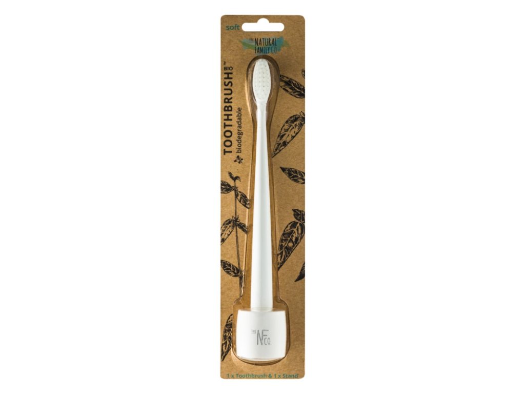- biologicky rozložiteľná zubná kefka z kukuričného škrobu (NON-GMO)