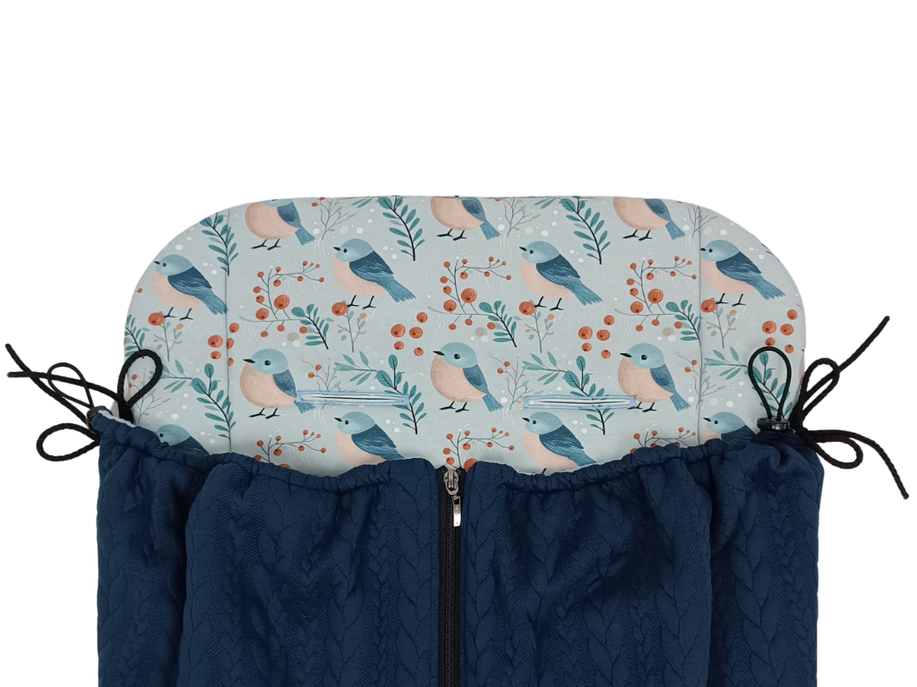 SET Podložka do kočárku prodloužená - Birds + Nepadací deka přechodová copánková - Dark Blue