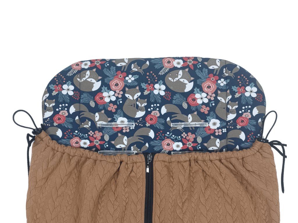 SET Podložka do kočárku prodloužená - Foxes + Nepadací deka přechodová copánková - Camel