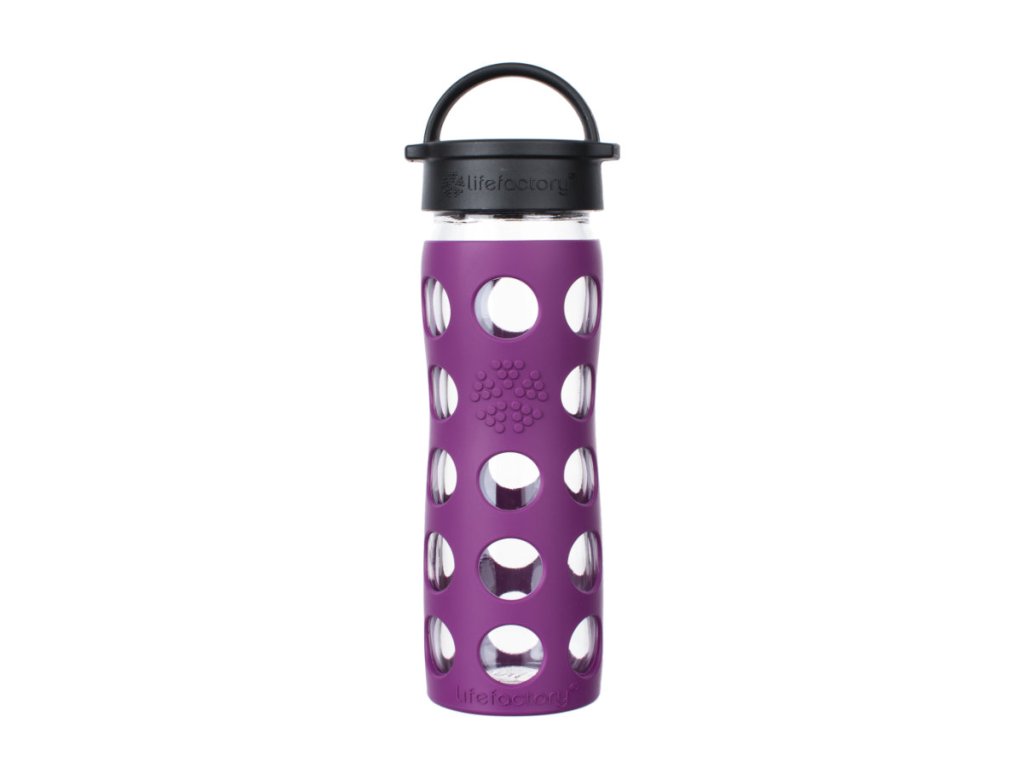 Sklenená fľaša Lifefactory 475 ml s klasickým uzáverom Plum